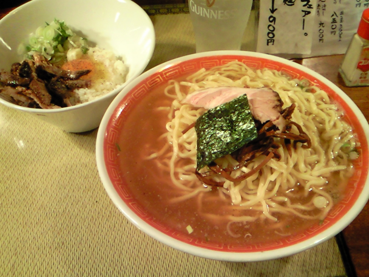 煮干醤油拉麺大盛り+焦がしネギ玉子かけチャーシューご飯+味玉(サービス)♪♪♪♪♪