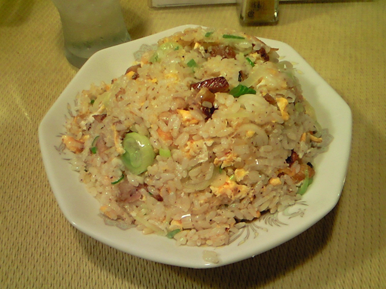 チャーハンは全体的に薄味だけど、ブラックペッパーがピリリと効いた味付けで、細切れなチャーシューと葱もゴロゴロ入っててなかなかウマー!!