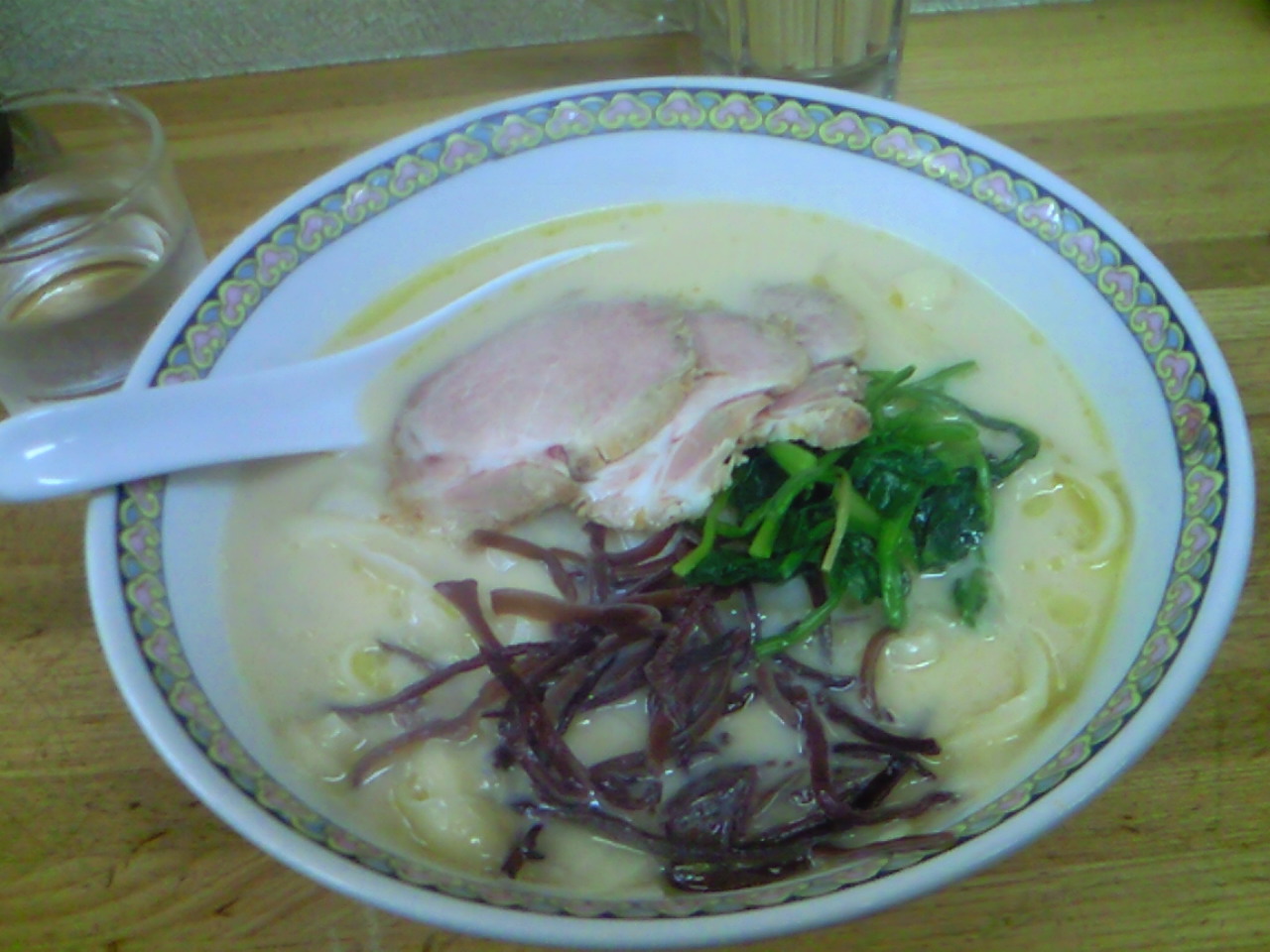 具材は、叉焼3枚と木耳、ほうれん草。