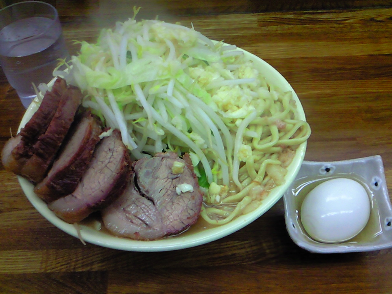 大ラーメン豚入り・ニンニクアブラ+特製煮玉子(京風味)♪♪♪♪♪