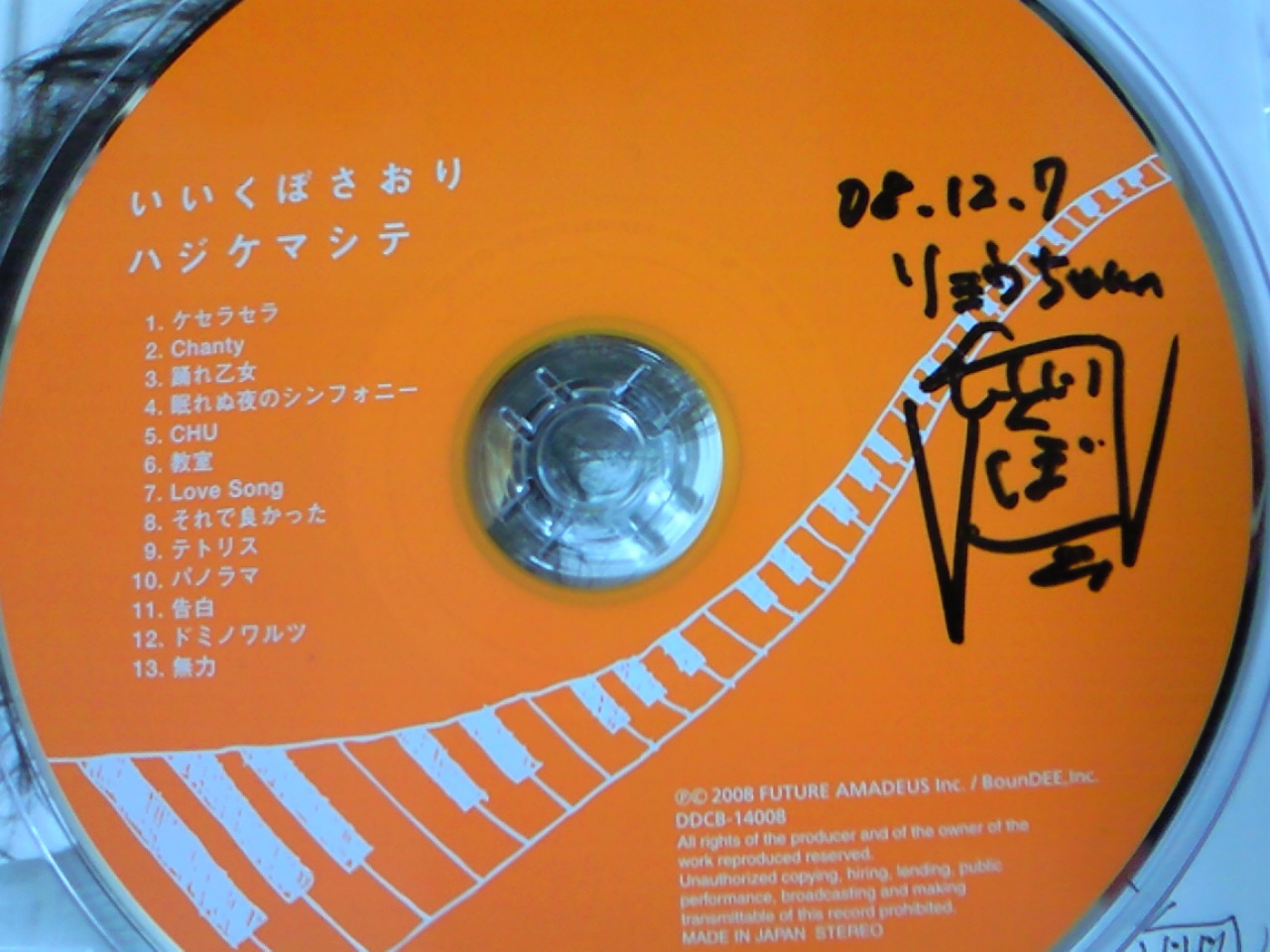 先月頭に衝動買いした位にハマった、いいくぼさおりさんの1stアルバム『ハジケマシテ』の発売記念のインストアライヴがあるっつー事で、タハラレコードショップへ。