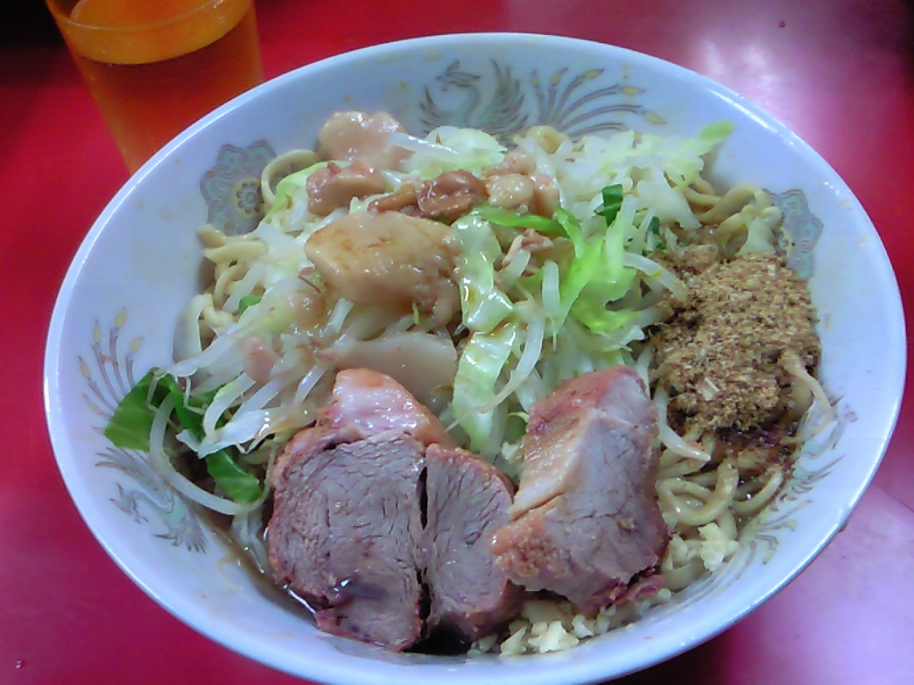 小ラーメン汁なし・麺硬め、ニンニクアブラカラメ魚粉♪♪♪♪♪