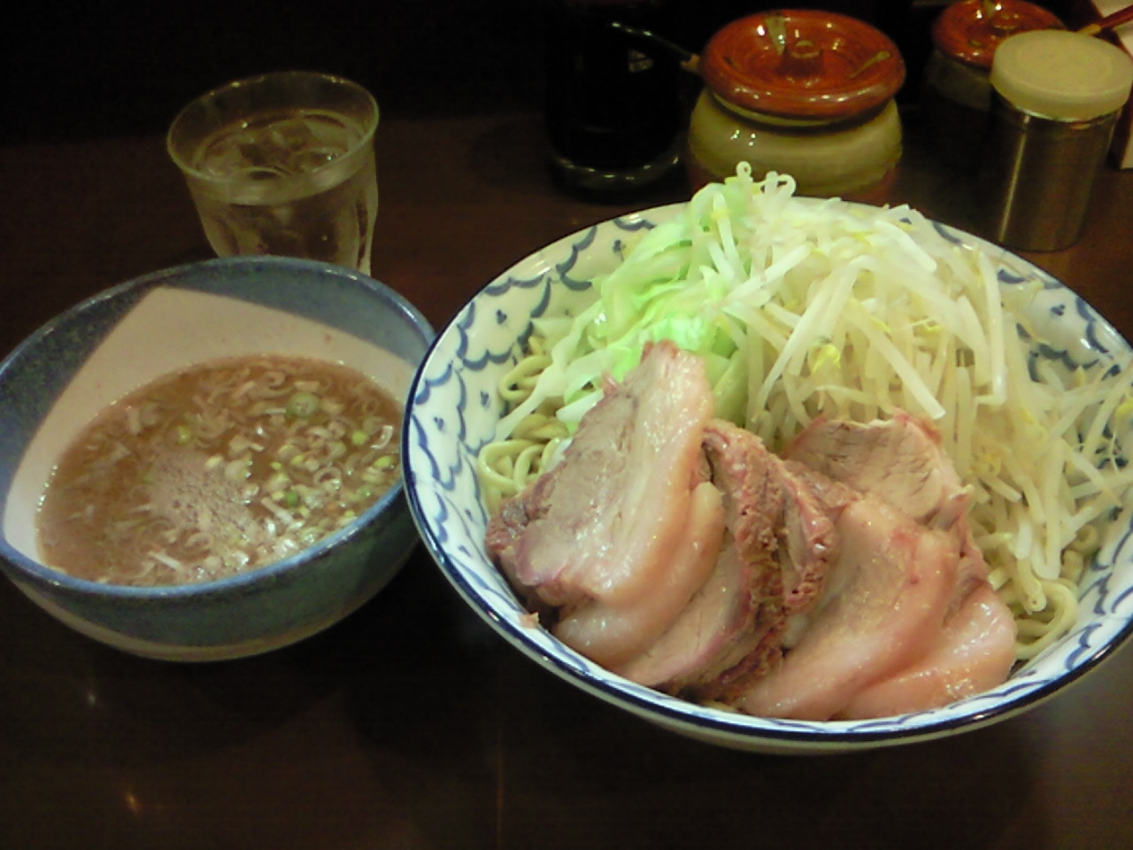 塩つけ麺大盛り+豚増し・麺硬め、ヤサイ多め、ニンニク(セルフ)♪♪♪♪♪