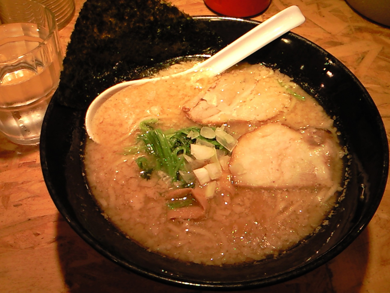 具材は、チャーシュー、メンマ、海苔、薬味葱等。