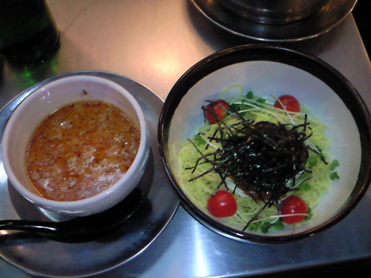 ここでも中村屋同様、別器で鶏ガラと魚介の薫るスープが運ばれて来て、そいつを徐々に足してって好みの味にして味わう。