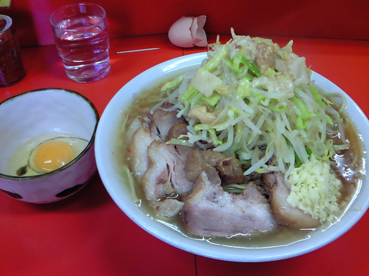 大豚ラーメン・麺硬め、ニンニクアブラ、生卵♪♪♪