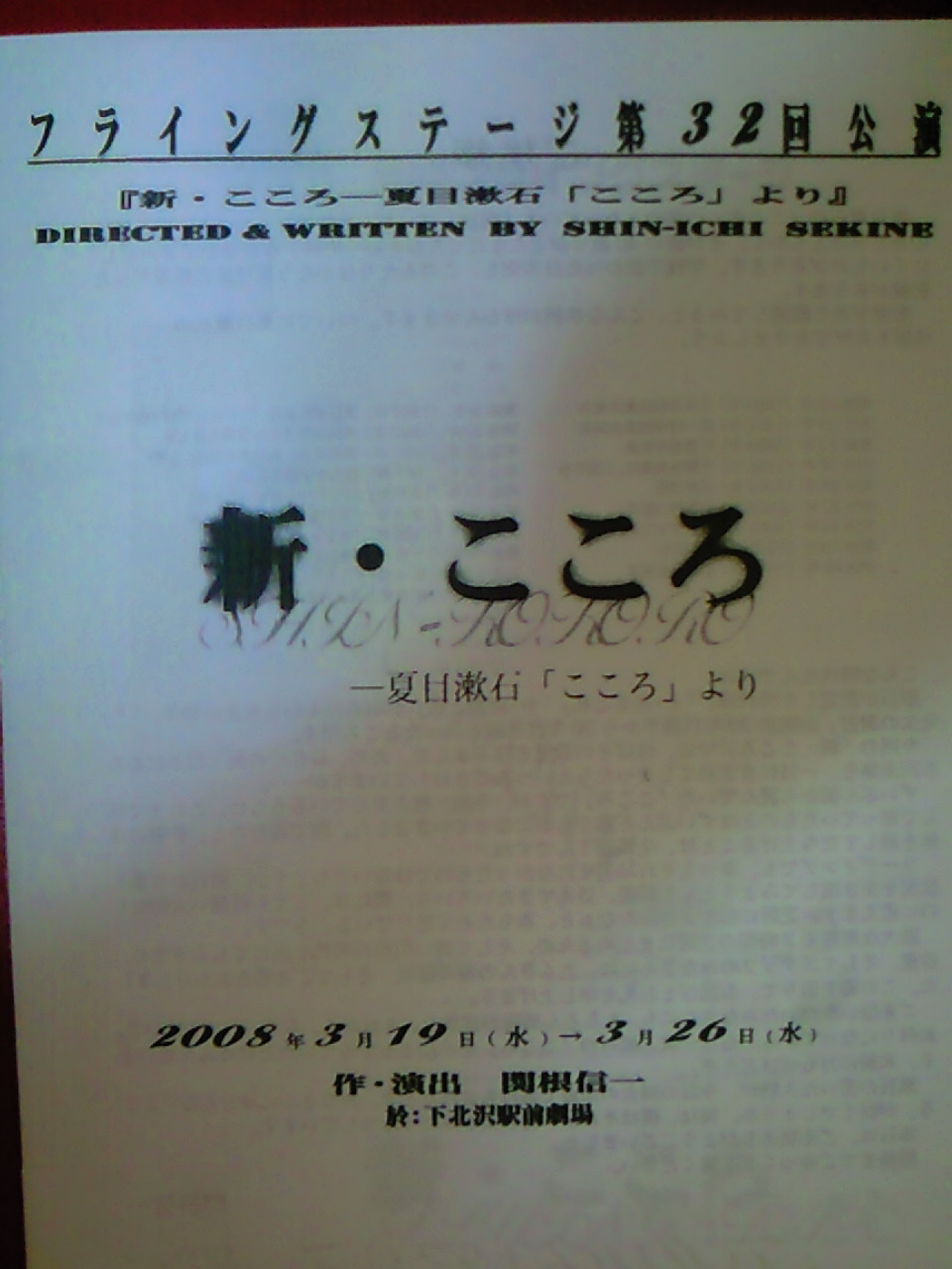 大学時代からの友・耕平が所属している、劇団フライングステージの公演「新・こころ」が、下北沢駅前劇場にて行われると言う事で、観に行ってきました!