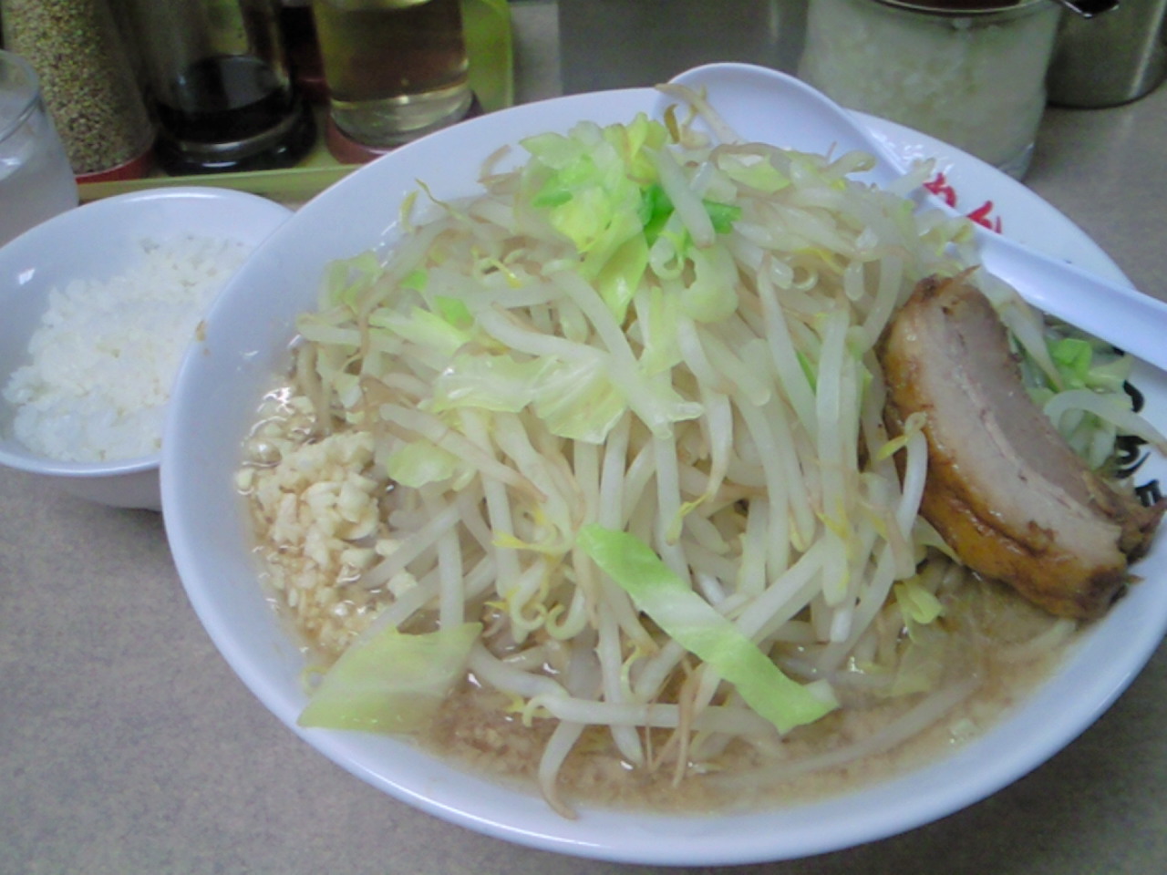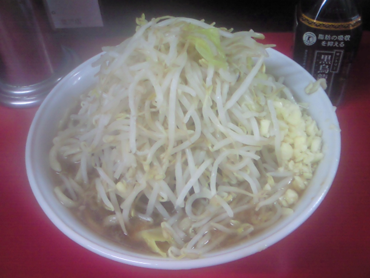 ヤサイはいつもよりキャベツ多めだが、基本的にはシャキクタモヤシ。