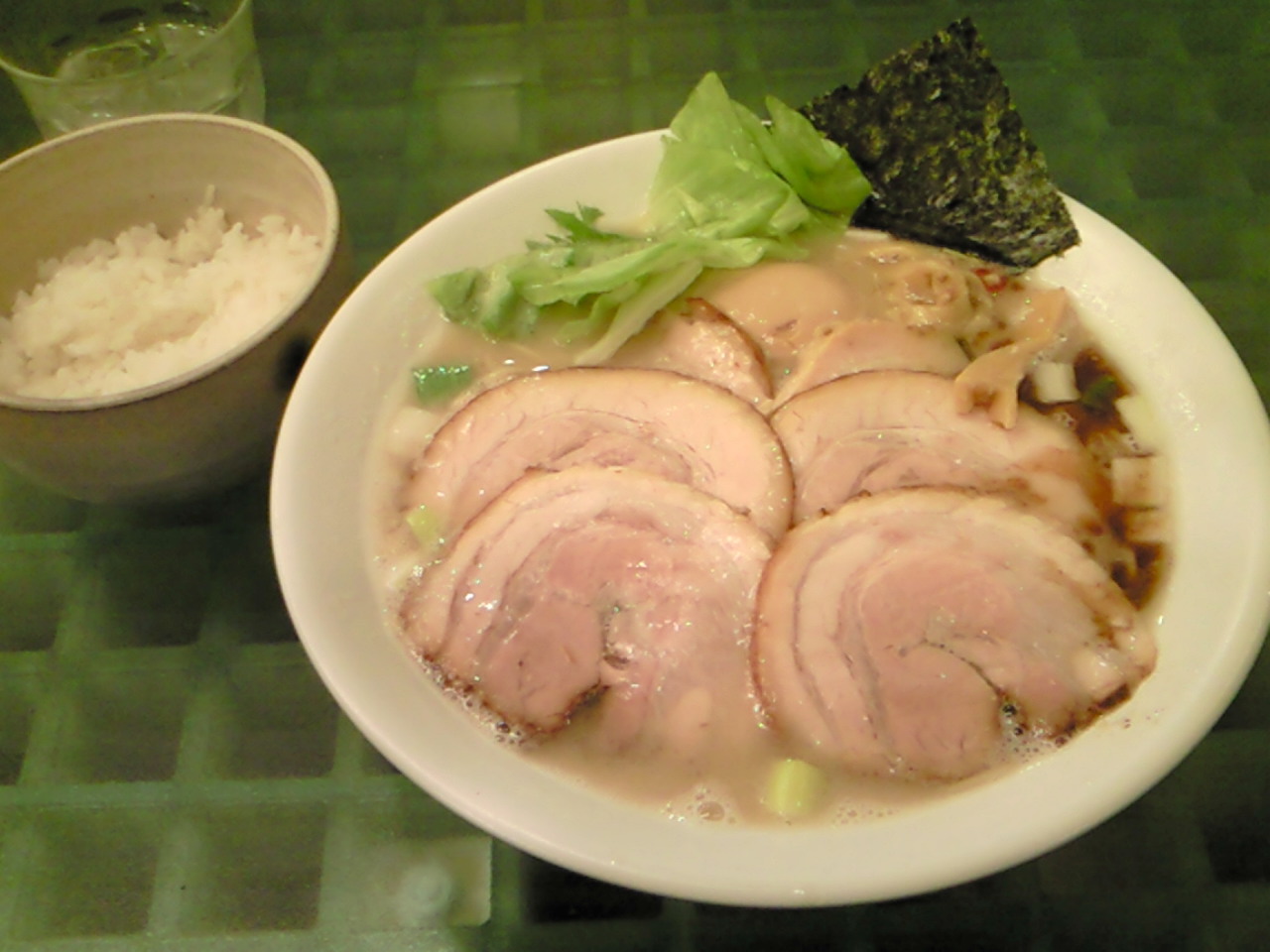 ぐるなびでサービス券を画面メモしてたので、食券提出時に見せたら味玉と海苔が増量されてラッキー♪