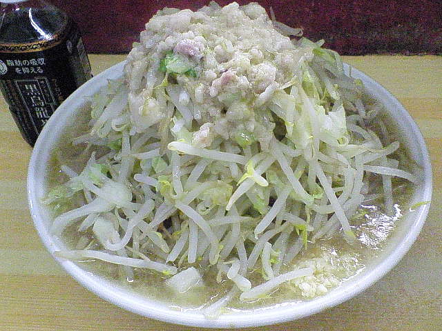 ブタは画像では、当然の如くヤサイの下に隠れちゃってるが、相変わらず小振りで、カネシの原液で付け込んだ様な味の濃いタイプ。