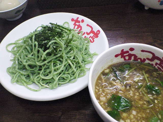 青海苔と、卵白、山芋が練り込まれた麺は、つけダレに負けない位の風味の良さ!