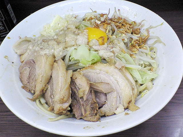 大豚ラーメン汁なし・麺硬め、チーズ、ヤサイマシニンニクアブラカラメ♪♪♪♪♪