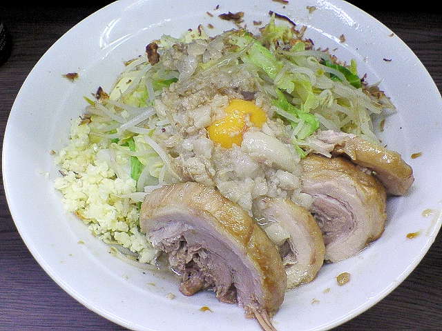 チーズやニンニク、生卵を中盤以降はいつもの様に掻き混ぜ、ジャンクさ大爆発でサクッと完食!